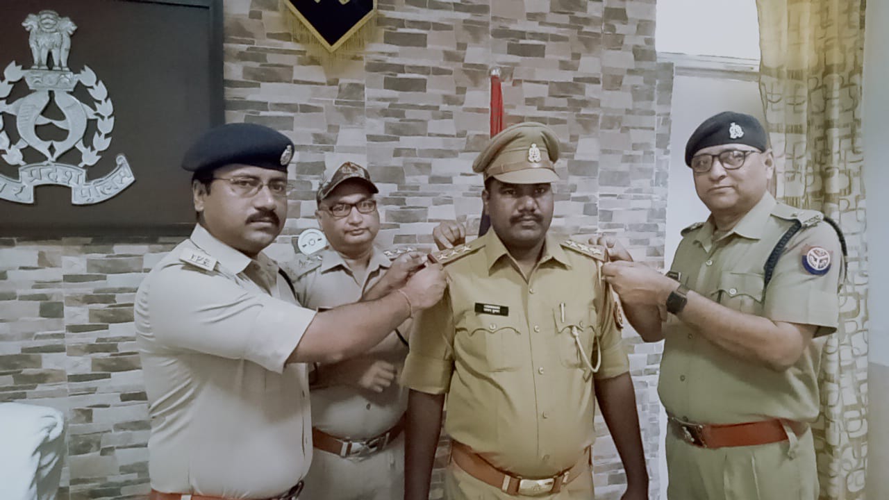 पुलिस अधीक्षक द्वारा पदोन्नति का स्टार लगाकर दी गई बधाई