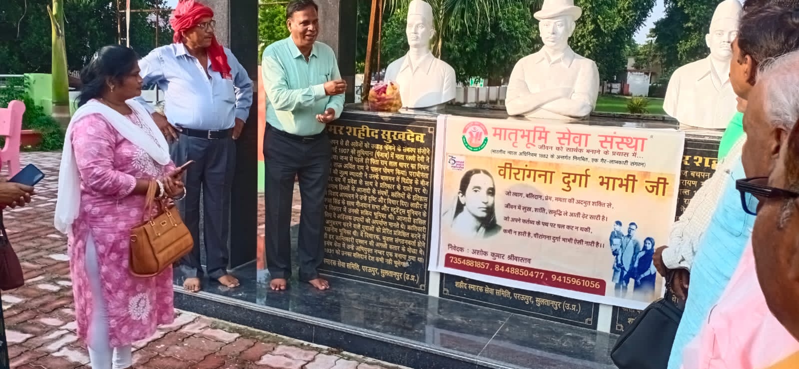 सुल्तानपुर -आज मातृभूमि सेवा संस्था द्वारा क्रांतिकारी दुर्गा भाभी की जयंती जिला पंचायत सुल्तानपुर परिसर में स्थापित शहीद भगत सिंह की प्रतिमा के सामने मनाई गई | इस अवसर पर जिला अध्यक्ष अशोक श्रीवास्तव नेमहान क्रांतिकारी के समर्पण और व्यक्तित्व पर व्यापक रूप से प्रकाश डाला |