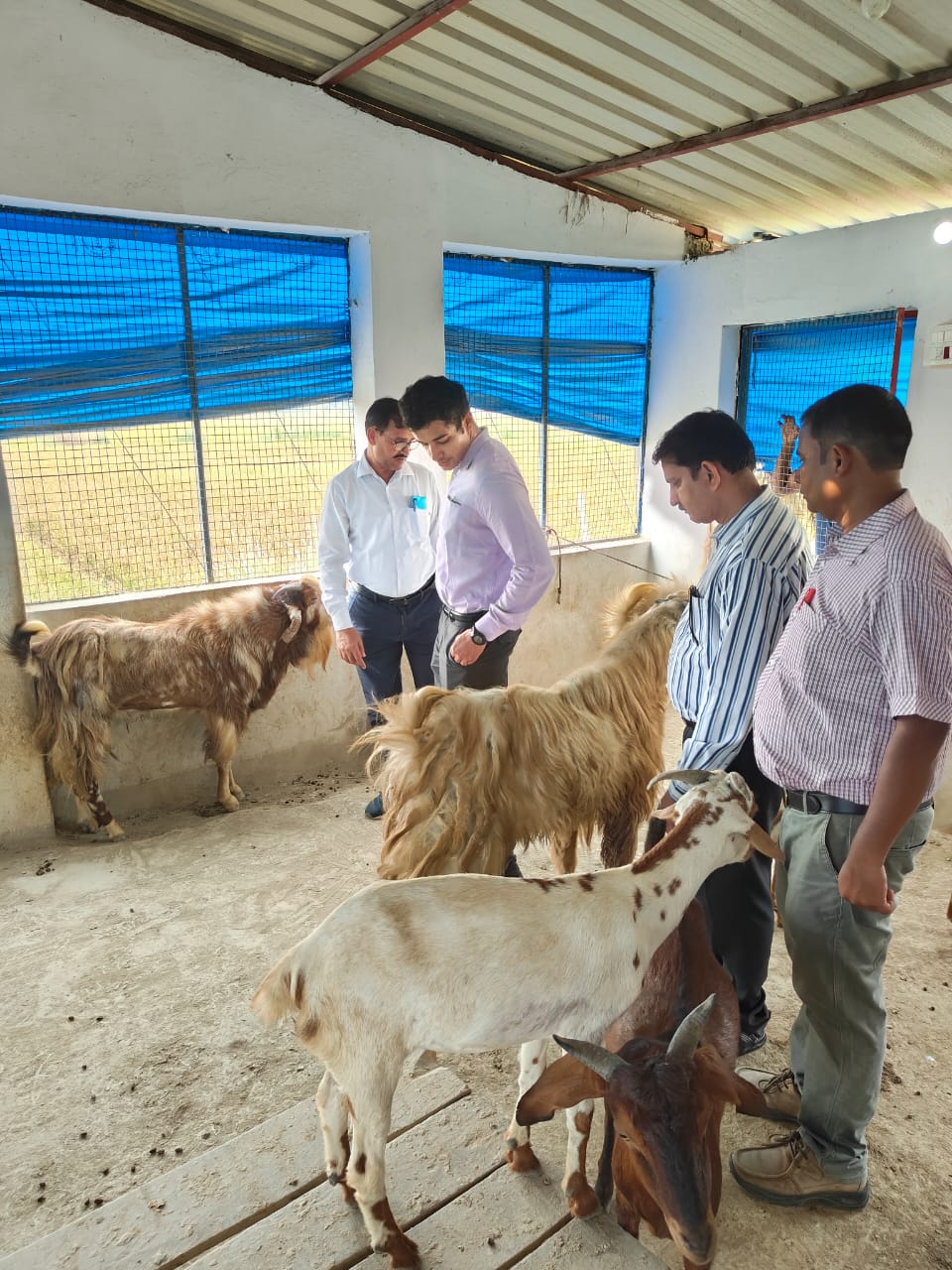 निरीक्षण के दौरान पाया गया कि फार्म में कोटा, गुजरी, बरबरी, जमुनापारी, ब्लैक बंगाल एवं कश्मीरी प्रजाति के नर बकरे एवं मादा बकरियाँ पाली गयी है, जिनकी संख्या लगभग 300 है। बकरियों के आहार हेतु भूसा दाना एवं ढेंचा को उपयोग में लाया जाता है। कुछ बकरियों का दुग्ध उत्पादन 2.5 से 3 लीटर प्रतिदिन बताया गया। बकरी पालन में किड मैनेजमेन्ट में ई-कोलाई (बकरी के बच्चों) का प्रबन्धन, पी०पी०आर० टीकाकरण, वेन्टिलेशन युक्त आवास, नस्ल की गुणवत्ता का प्रबन्धन, पोषण युक्त आहार एवं सैनिटेशन प्रमुख बिन्दु है, जिस पर विशेष ध्यान देने की जरूरत है।