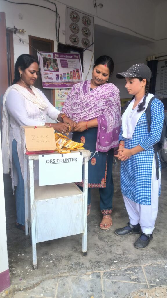 स्टाॅप डायरिया अभियान के तहत दिया जा रहा ओआरएस पैकेट