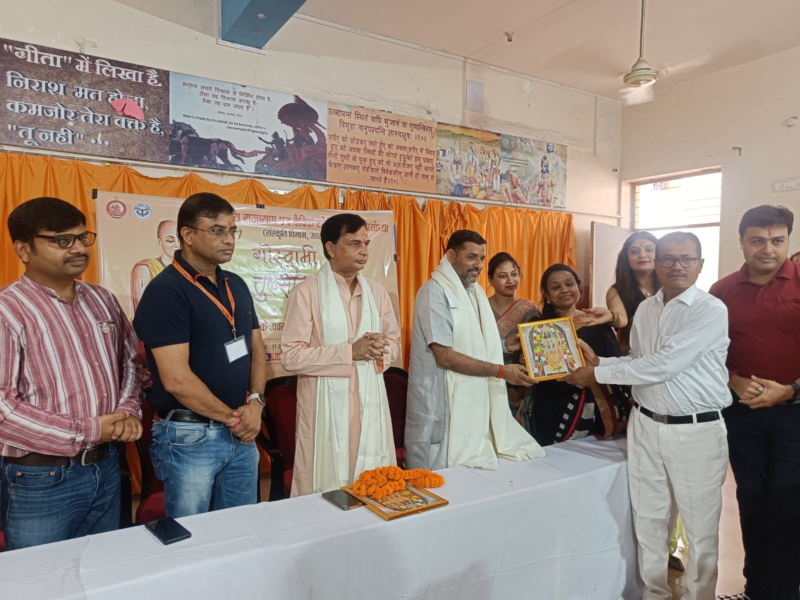 गोरखपुर- आज संस्कृति विभाग ,उत्तर प्रदेश के अंतर्राष्ट्रीय रामायण एवं वैदिक शोध संस्थान, के तत्वावधान में विजय चौक स्थित एस एस एकेडमी के प्रांगण मे गोस्वामी तुलसीदास जी की जयंती के अवसर पर विचार गोष्ठी एवं “तुलसी के राम “ का कार्यक्रम सकुशल संपन्न हुआ|कार्यक्रम का शुभारंभ मुख्य अतिथि मानस मर्मज्ञ पवन कुमार मिश्र,वरिष्ठ वाणिज्य प्रबंधक , पूर्वोत्तर रेलवे , विशिष्ट अतिथि आचार्य बृजेश मणि मिश्रा एवं कार्यक्रम की अध्यक्षता कर रही भारत विकास परिषद प्रांतीय पदाधिकारी सुधा मोदी सहित श्री हरि शाखा के अध्यक्ष कनक हरि अग्रवाल सचिव राजर्षि बंसल महिला संयोजिका डॉ प्रियंका वर्मा एवं विद्यालय की प्रधानाचार्या डॉ निशि अग्रवाल ने गोस्वामी तुलसीदास जी के चित्र पर माल्यार्पण एवं दीप प्रज्वलित कर किया गया|