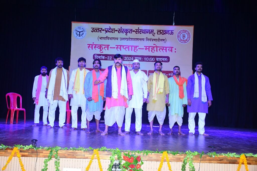 लखनऊ: उत्तर प्रदेश संस्कृत संस्थान लखनऊ द्धारा अपने परिसर में संस्कृत सप्ताह के अवसर पर आज ‘‘मानवजीवने संस्कृतस्य आवश्यकता‘‘ विषय पर पर व्याख्यान गोष्ठी एवं जनपद स्तरीय संस्कृत प्रतिभा खोज प्रतियोगिता का भव्य आयोजन तथा ‘‘काकोरी के क्रान्ति-कारियों को नमन‘‘ पर आधारित संस्कृत नाटक का भी मंचन किया गया। सर्वप्रथम दीप प्रज्वलन, माल्यार्पण के पश्चात् मुख्य अतिथियों का वाचिक स्वागत किया गया।