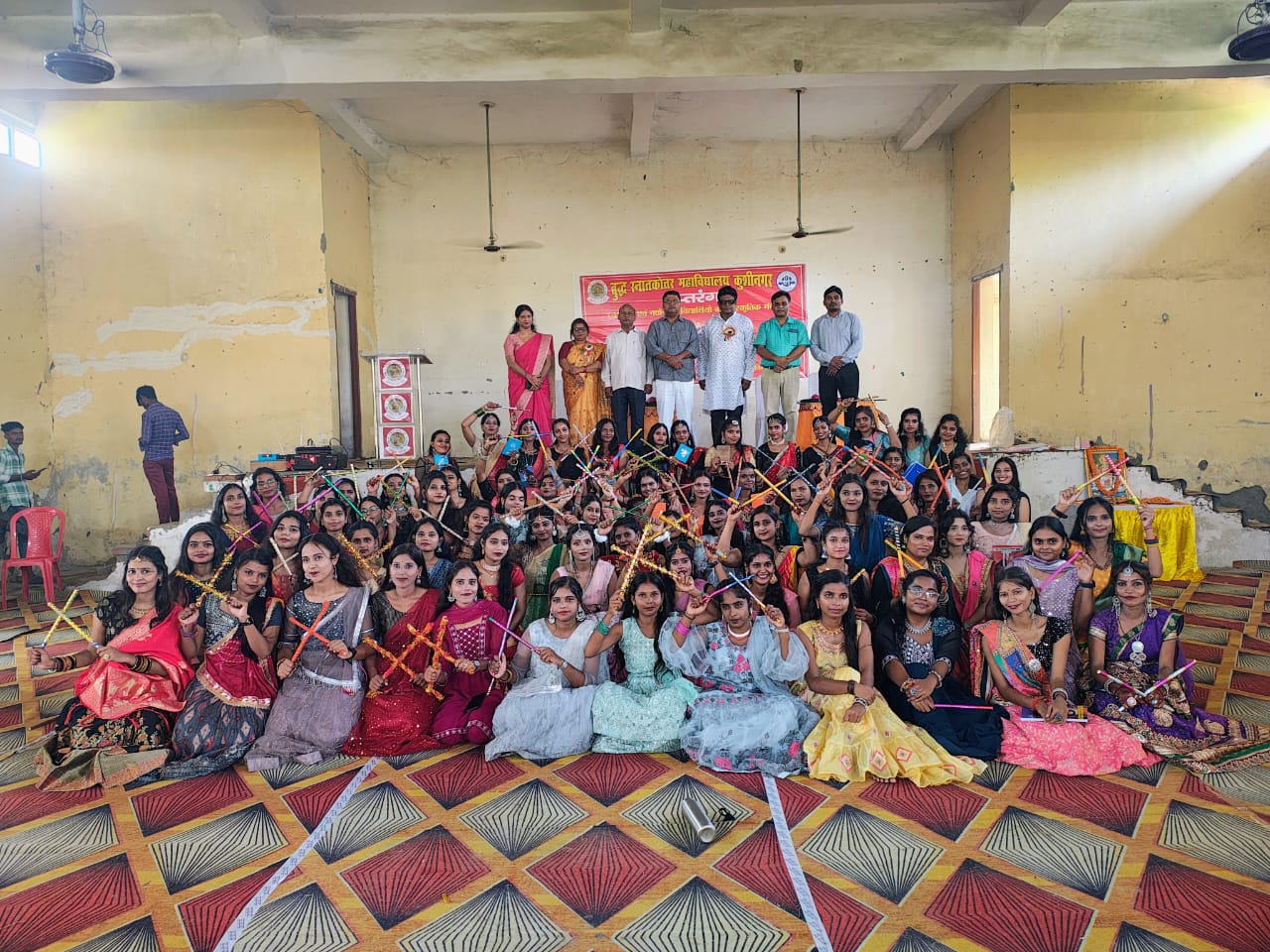 कुशीनगर-बुद्ध स्नातकोत्तर महाविद्यालय कुशीनगर के सांस्कृतिक मंच ‘सप्तरंग’ द्वारा आयोजित छात्राओ के मध्य डांडिया नृत्य की समूह प्रतियोगिता आज मजीठिया सभागार में संपन्न हुई।कार्यक्रम में निर्णायक मंडल के वरिष्ठ सदस्य डॉ दिनेश तिवारी ने विजेता टीम की घोषणा की। इस अवसर अपने विचार व्यक्त करते हुए आपने कहा कि संगीत और नृत्य मनुष्य के मनोरंजन के साधन होने के साथ साथ मनुष्यता की प्रगति के भी प्रतीक हैं।इसके संस्कृति के विकास के स्तर का पता चलता है।लोक कलाएं हमे सुसंस्कृत और सभ्य बनाती है।