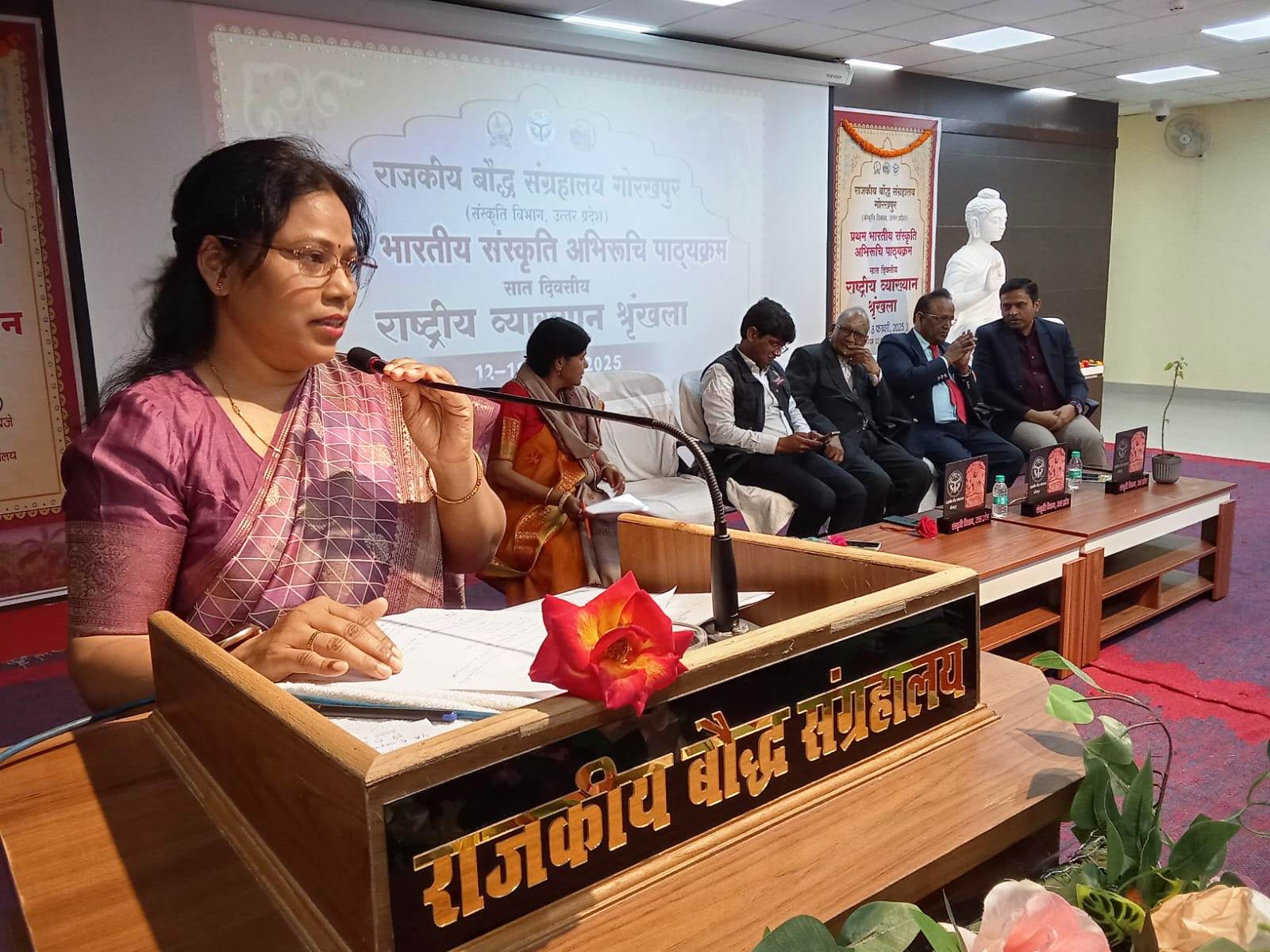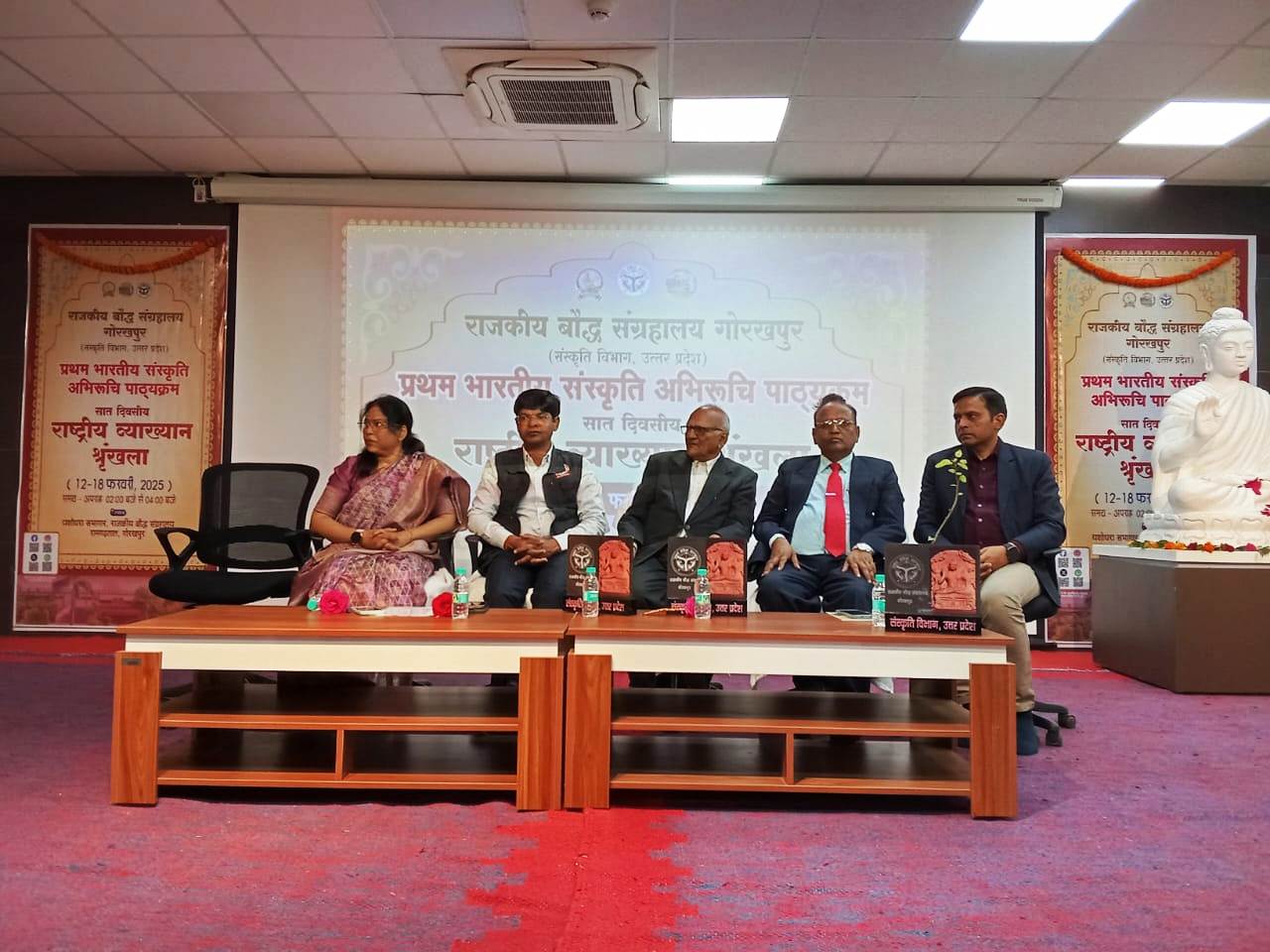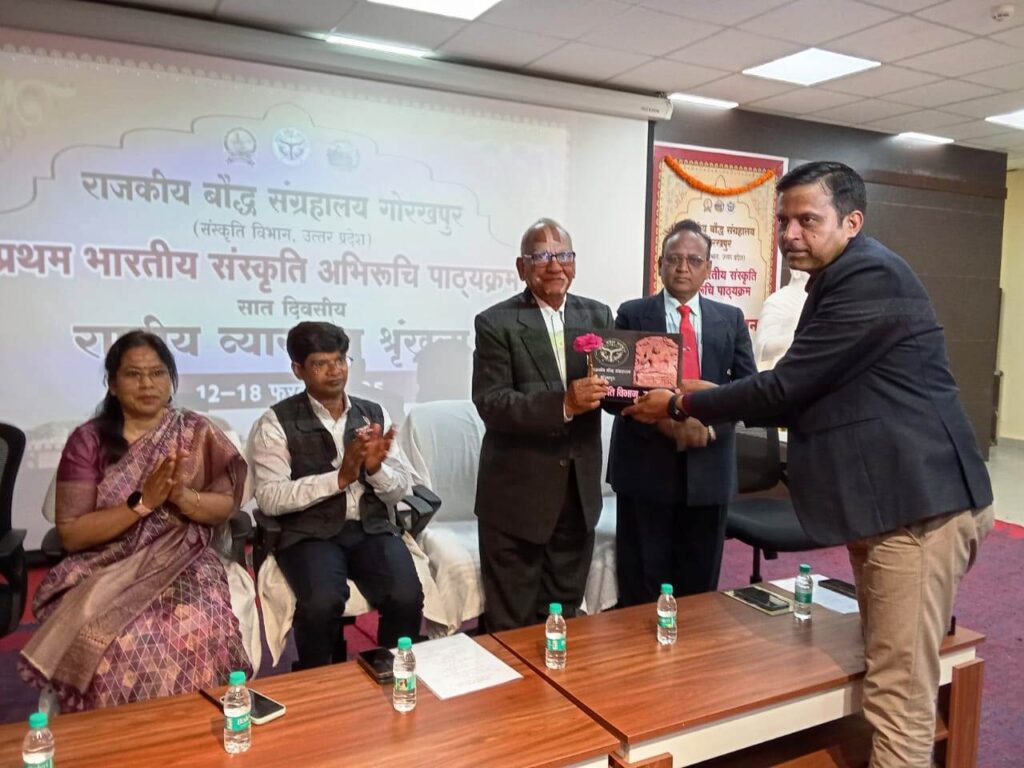 राजकीय बौद्ध संग्रहालय, गोरखपुर (संस्कृति विभाग, उ0प्र0) द्वारा आज भारतीय संस्कृति अभिरूचि पाठ्यक्रम के अन्तर्गत सात दिवसीय राष्ट्रीय व्याख्यान श्रृंखला का पंचम दिवस सम्पन्न हुआ, जिसका शुभारंभ मंचासीन अतिथियों द्वारा दीप प्रज्वलन कर किया गया।
