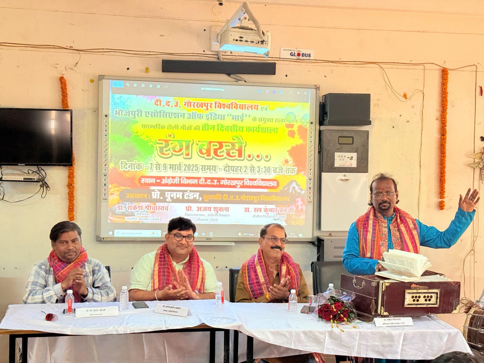 गोरखपुर| होली केवल रंगों का त्योहार नहीं, बल्कि हमारी संस्कृति, परंपरा और लोकसंस्कृति का उत्सव भी है। सदियों से गाए जाने वाले पारंपरिक होली गीत, समाज को जोड़ने और लोकजीवन की गहरी संवेदनाओं को प्रकट करने का माध्यम रहे हैं। इसी परंपरा को जीवंत बनाए रखने के उद्देश्य से भोजपुरी एसोसिएशन ऑफ इंडिया (भाई) एवं गोरखपुर विश्वविद्यालय के संयुक्त तत्वावधान में तीन दिवसीय पारंपरिक होली गीत कार्यशाला ‘रंग बरसे’ का आयोजन किया गया।