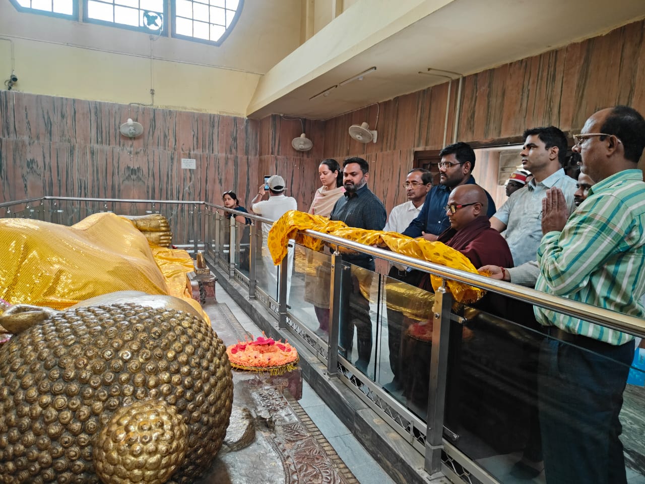 कुशीनगर- आज जिलाधिकारी महेंद्र सिंह तंवर द्वारा महापरिनिर्वाण स्थली तथागत भगवान बुद्ध की लेती हुई प्रतिमा का दर्शन कर चीवर चढ़ाया तथा आशीवार्द लिया। उन्होंने समस्त जनपदवासियों के कुशल मंगल की कामना भी की। तत्पश्चात पर्यटन विकास परियोजनाओं के अंतर्गत बुद्धा थीम पार्क, रामभार स्तूप के निकट बुद्धा घाट हिरण्यवती नदी पाथ वे, कृषि विश्वविद्यालय के निर्माण कार्यों की अद्यतन प्रगति का स्थलीय निरीक्षण किया।बुद्धा थीम पार्क, बुद्धा हिरण्यवती नदी घाट पर हो रहे पर्यटन के दृष्टिकोण से विकास निर्माण कार्यों के प्रगति की जानकारी ली एवं विकास कार्यों के अंतर्गत बुद्धा घाट, हिरण्यावती नदी का सौंदर्यीकरण, बुद्धा थीम पार्क के अंतर्गत विशिष्ट एवं सामान्य प्रकृति के कार्य के बारे में भी संबंधित से जानकारी प्राप्त किया। बौद्ध स्थल रामभार स्तूप परिसर में ध्वनि एवं प्रकाश शो के कार्य की प्रगति का भी निरीक्षण किया। सभी परियोजनाओं में गुणवत्तापरक कार्य कराते हुए ससमय पूर्ण करने के निर्देश दिए। उन्होंने संपूर्ण निर्माण कार्यों का वहनीय, धारणीय एवं चिरकालिक विकास करने के निर्देश दिए ताकि पर्यटन के दृष्टिकोण से आकर्षण का केंद्र सदा बना रहे।