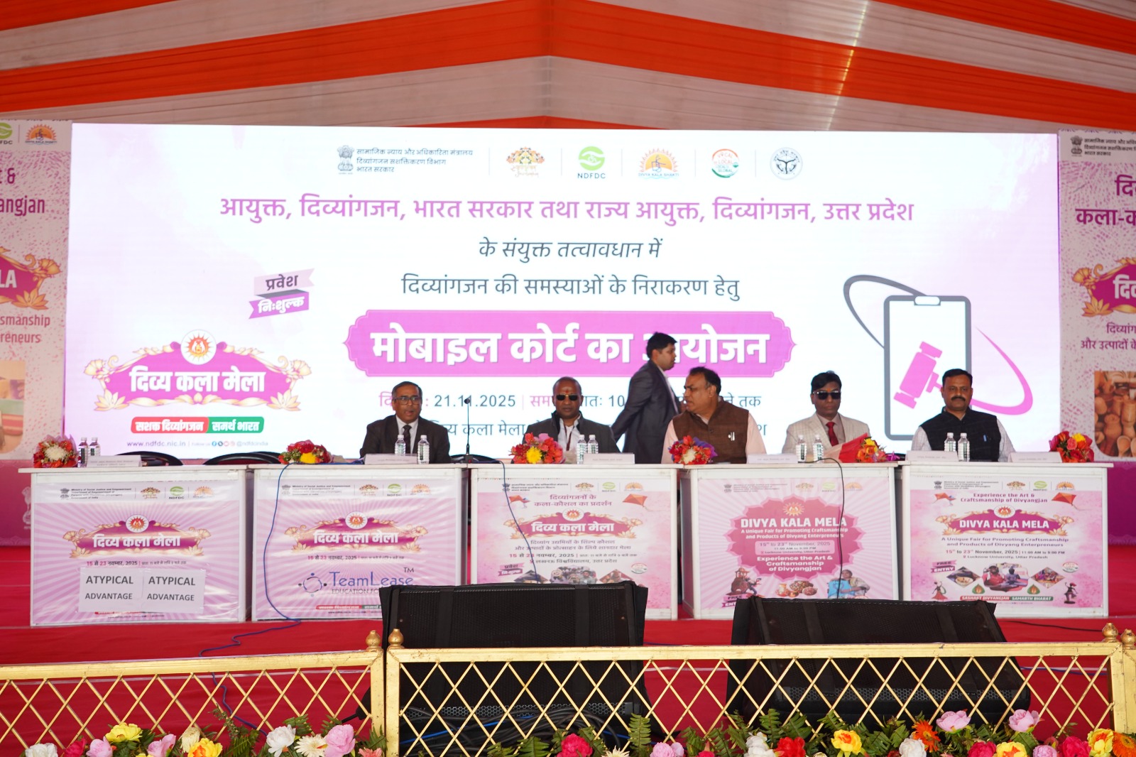 लखनऊ:दिव्यांगजन के अधिकारों की सुरक्षा एवं उनकी समस्याओं के त्वरित निस्तारण के उद्देश्य से आज दिव्य कला मेला क्षेत्र, लखनऊ विश्वविद्यालय में आयुक्त, दिव्यांगजन, भारत सरकार एवं राज्य आयुक्त, दिव्यांगजन, उत्तर प्रदेश के संयुक्त तत्वावधान में मोबाइल कोर्ट का आयोजन किया गया। मोबाइल कोर्ट में उपस्थित 259 दिव्यांगजनों की समस्याओं पर मौके पर ही सुनवाई करते हुए संबंधित अधिकारियों को आवश्यक कार्यवाही हेतु निर्देशित किया गया।मोबाइल कोर्ट में दिव्यांगजन से संबंधित विभिन्न सेवाओं हेतु मेडिकल बोर्ड, आयुष्मान कार्ड, राशन कार्ड, दिव्यांग पेंशन, रेल कंसेशन प्रमाण-पत्र आदि के स्टॉल लगाए गए, जहां दिव्यांगजन की समस्याओं का त्वरित समाधान किया गया।