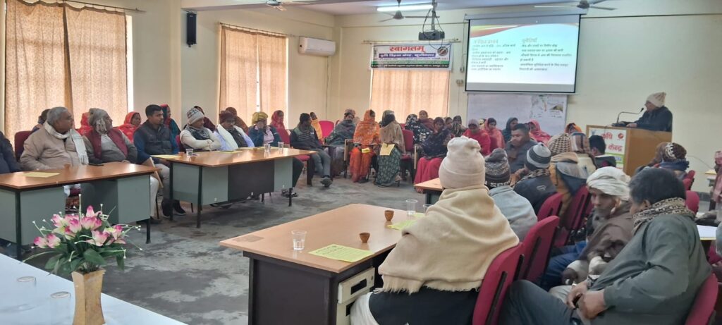 मुख्य अतिथि के रूप में क्षेत्रीय अनुसंधान केंद्र प्रमुख डॉ. पुष्पेंद्र प्रताप सिंह ने किसानो को योजना में जुड़ने के लिए प्रोत्साहित किया।