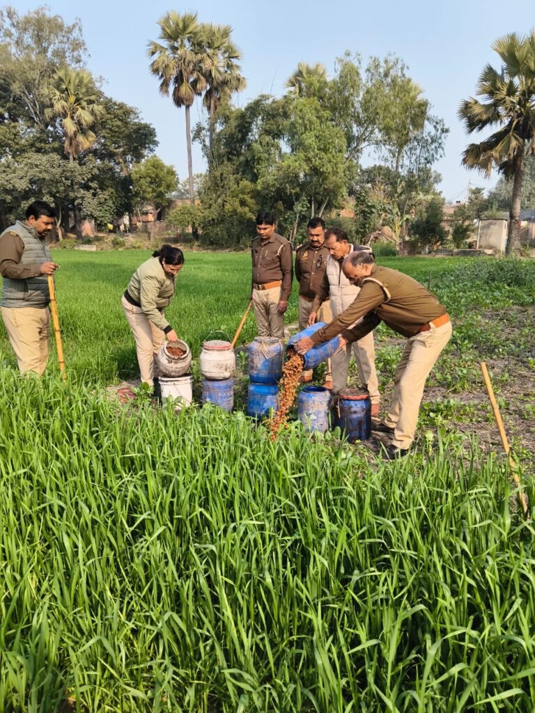 आबकारी विभाग व पुलिस की संयुक्त कार्रवाई, 250 किलोग्राम महुआ लहन किया गया नष्ट
