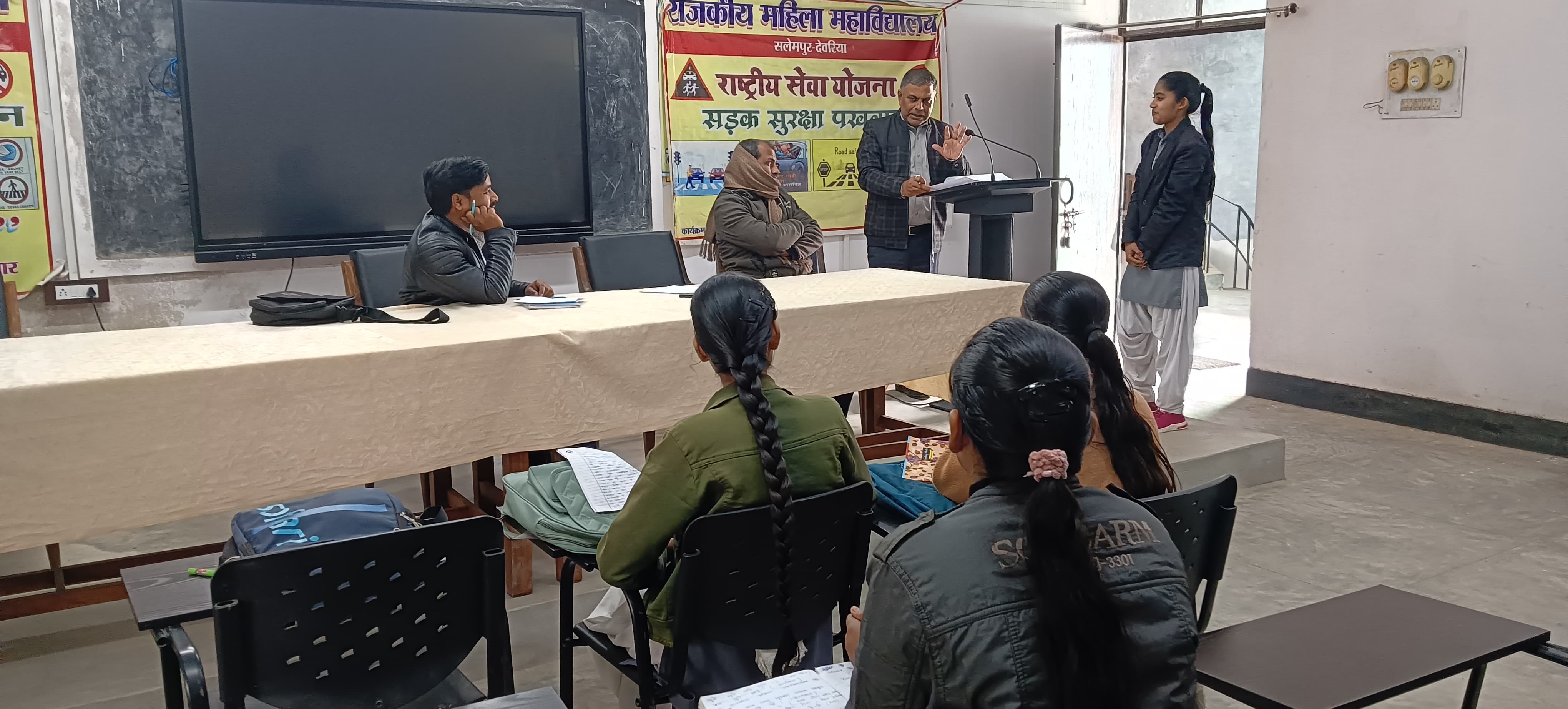 सलेमपुर-आज राजकीय महिला महाविद्यालय सलेमपुर देवरिया में राष्ट्रीय सेवा योजना के तत्वाधान में सड़क सुरक्षा जागरूकता का कार्यक्रम आयोजित किया गया |जिसमें छात्राओं ने बढ़- चढ़ कर भाग लिया । जिसमें भाषण प्रतियोगिता ,रील प्रतियोगिता और नुक्कड़ नाटक प्रतियोगिता का आयोजन किया गया ।