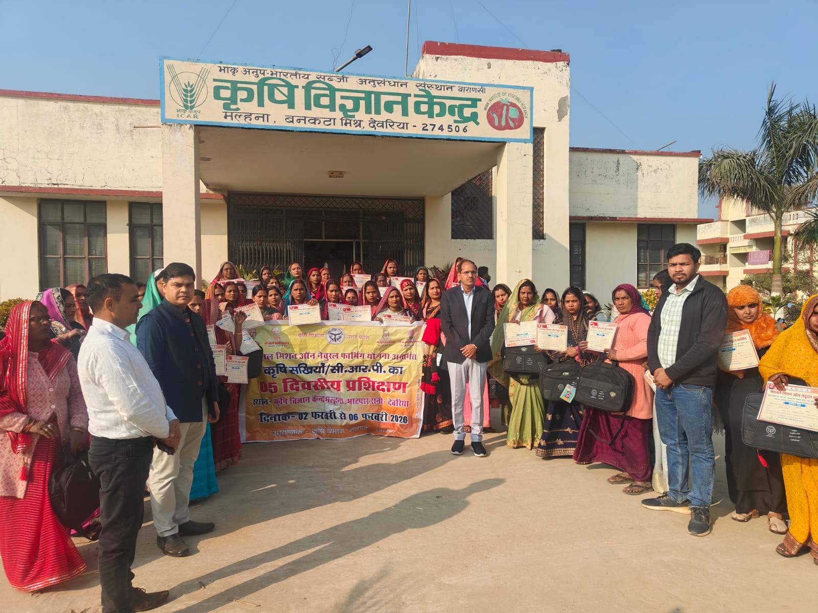 भाटपाररानी – कृषि विज्ञान केंद्र (भाकृअनुप-भारतीय सब्जी अनुसंधान संस्थान वाराणसी) मल्हना, देवरिया के सभागार में कृषि विभाग, देवरिया के माध्यम से कृषि सखियों के लिए नेशनल मिशन ऑन नेचुरल फार्मिंग के अंतर्गत 2 से 6 फरवरी 2026 तक पांच दिवसीय प्राकृतिक खेती प्रशिक्षण कार्यक्रम का आयोजन किया गया।