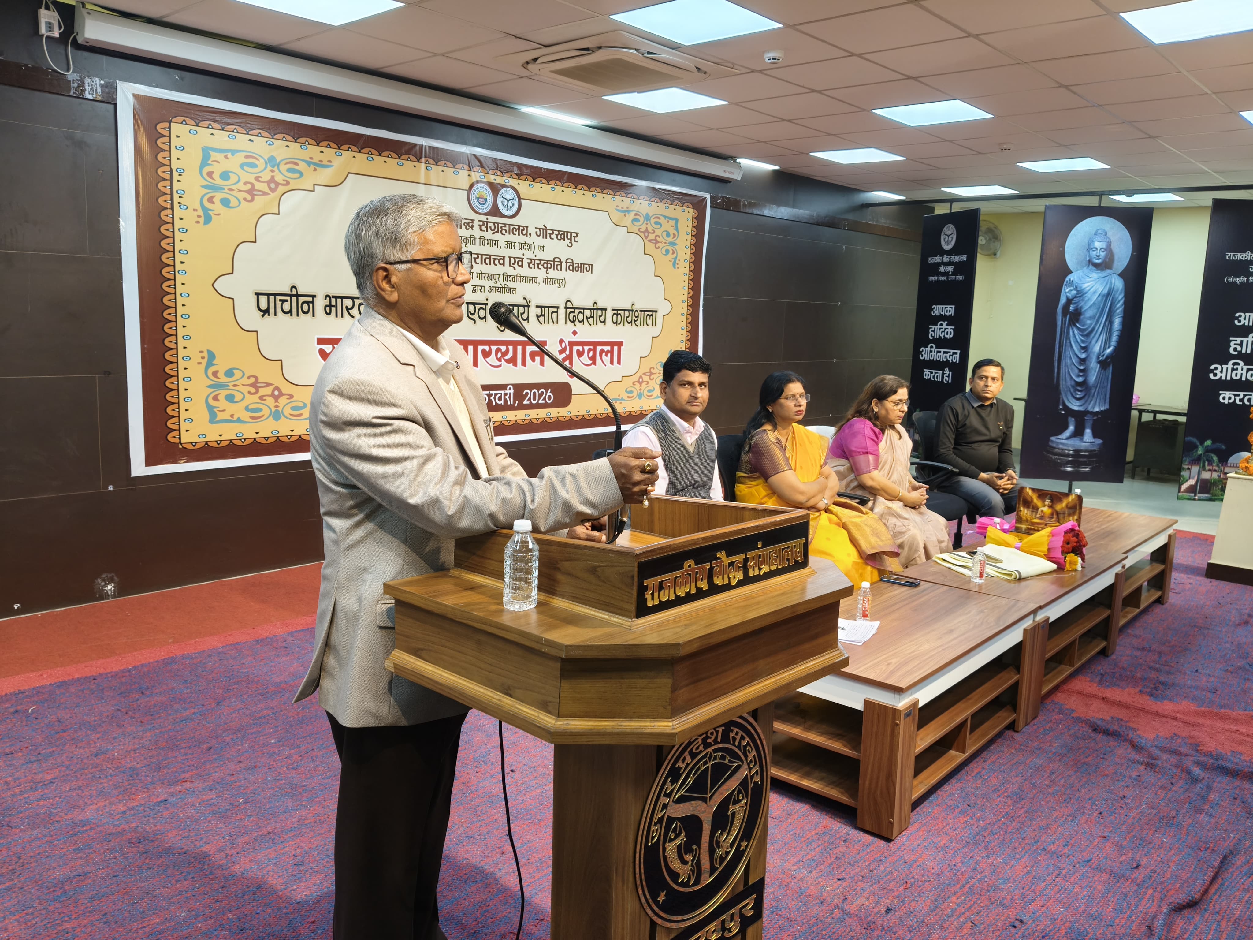 गोरखपुर-राजकीय बौद्ध संग्रहालय, गोरखपुर में ’’प्राचीन भारतीय अभिलेख एवं मुद्राएं-अभिरूचि कार्यशाला’’ राष्ट्रीय व्याख्यान श्रृंखला के अन्तर्गत आज प्रो0 प्रज्ञा चतुर्वेदी,विभागाध्यक्ष प्राचीन इतिहास संस्कृति एवं पुरातत्व विभाग, दी0द0उ0गो0 वि0वि0, गोरखपुर द्वारा ’’ अभिलेखों एवं मुद्राओं के आलोक में वैष्णव धर्म का विकास’’ विषय पर विस्तृत सूचना प्रतिभागियों को उपलब्ध करायी गयी।