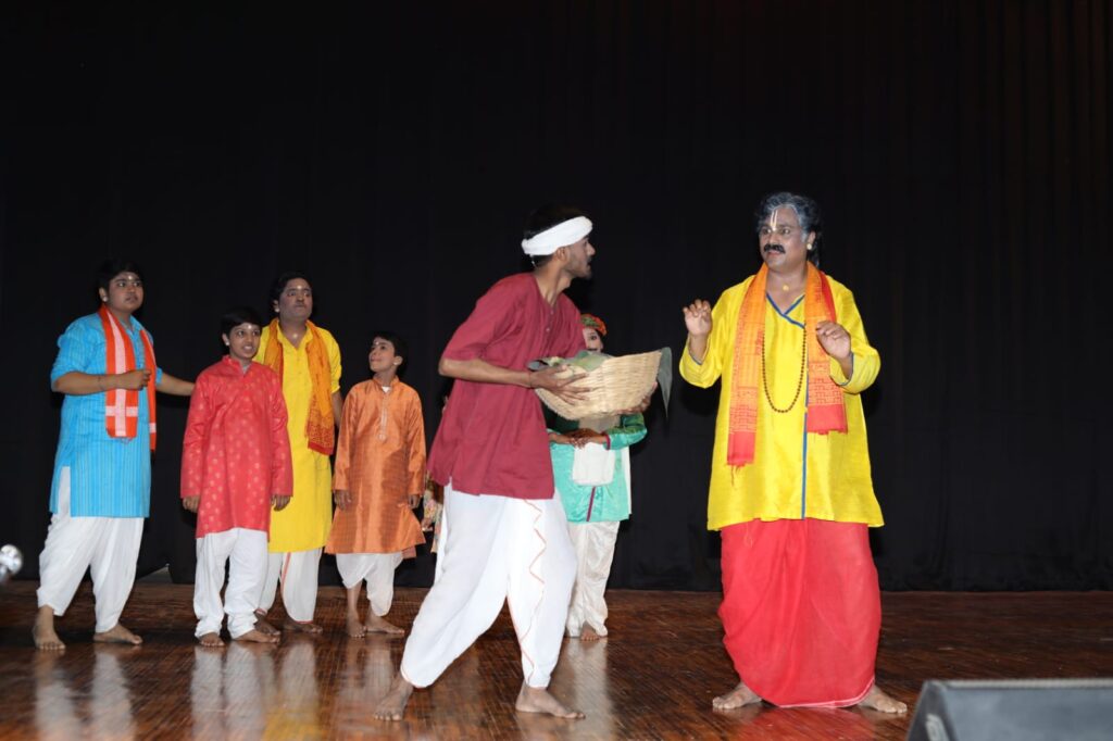 नाटक में दिखाया गया किस प्रकार मोटे राम शास्त्री निमंत्रण के लालच में सात ब्राह्मणों की जगह पर अपनी पत्नी व बच्चों को लेकर रानी साहिबा के दरबार में पहुंच जाते हैं। मगर उनका झूठ समय से पकड़ में आ जाता है जब उनके मित्र चिंतामणि उनकी सारी खोल देते हैं और नाटक एक सामाजिक सीख के साथ खत्म होता है। हास्य व्यंग्य से भरपूर एवं रवीन्द्र रंगधर के कसे हुए निर्देशन ने दर्शकों को अंत तक बांधे रखा। नाटक के प्रत्येक कलाकारों ने अपने अभिनय से दर्शकों का भरपूर मनोरंजन किया। मोटे राम शास्त्री की मुख्य भूमिका में हरीश शर्मा हंस एवं सोना देवी ने अपने अभिनय से अपने चरित्र को जीवंत कर दिया।