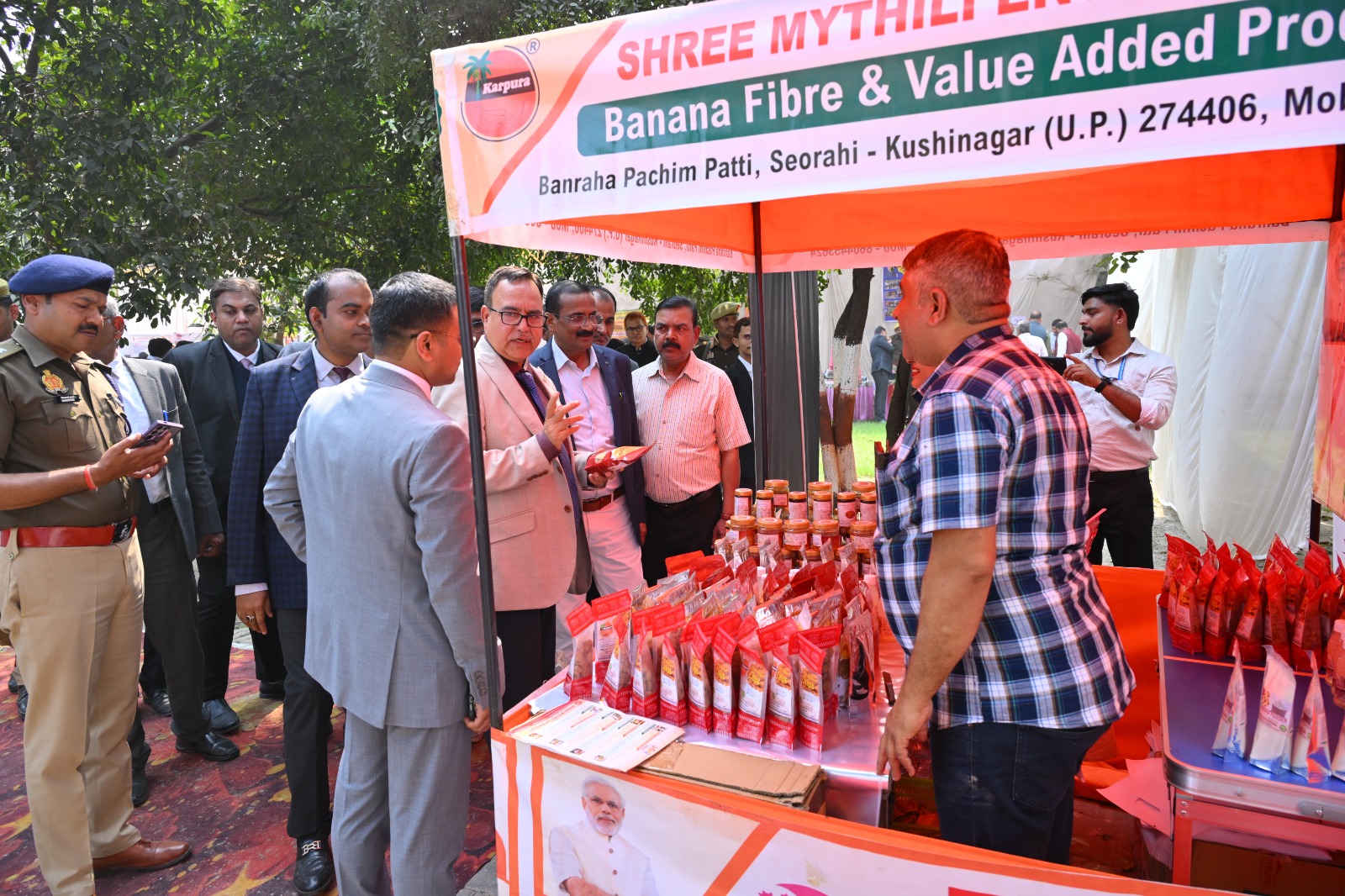 जिला उद्योग प्राेत्साहन तथा उद्यमिता विकास केन्द्र कुशीनगर के द्वारा एक जनपद एक उत्पाद योजना के अन्तर्गत छः लाख रूपये का चेक प्रदान किया गया। मुख्यमंत्री युवा उदमी विकास अभियान योजना के तहत दो लाभार्थियाें को पाॅच-पाॅच लाख रूपये का चेक प्रदान किया गया।जिला समाज कल्याण विभाग के द्वारा स्कुली छात्राओ को साईकिल प्रदान किया गया। जिला दिव्यांग विभाग की ओर से छः लाभार्थियो को फोल्डिंग व्हीलचेयर व चार लार्भार्थियों को स्मार्ट केन उपकरण प्रदान किया गया। मत्स्य विभाग द्वारा तीन लाभार्थियों को मछली पालन के सम्बन्ध में योजना का लाभ दिया गया। पशुपालन विभाग द्वारा पाॅच लाभार्थियों को नन्द बाबा दुग्ध मिशन योजना, भेड़ पालन व बकरी पालन के सम्बन्ध में योजना का लाभ प्रदान किया गया।
