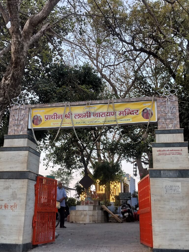 आगरा -ताजमहल से सटे एक प्राचीन श्री लक्ष्मी नारायण भगवान का मंदिर है , जो मनोकामना पूर्ण मन्दिर है ।